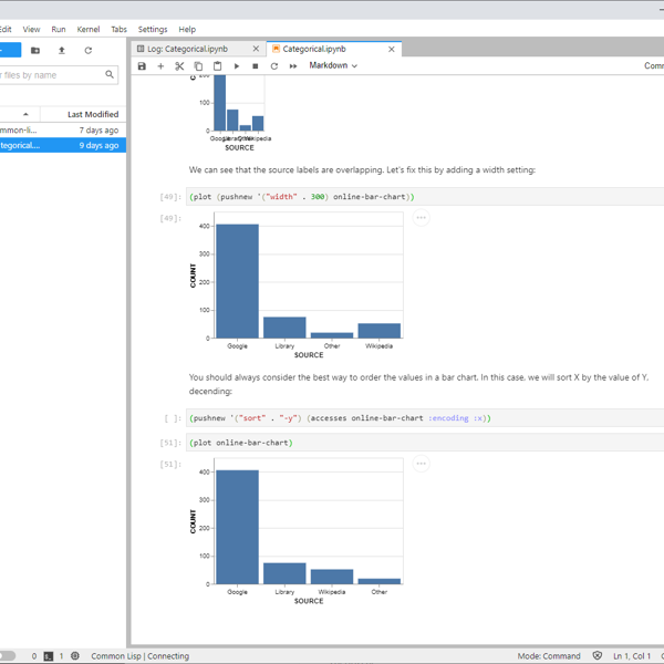 Common Lisp was the only framework that met all these requirements. And, it is not the first time lisp has been used in a statistical setting. XLISP-STAT, our spiritual predecessor, was a contemporary of R in the early days of development. Wikipedia says about it: “XLispStat was historically influential in the field of statistical visualization” and its author, Luke Tierney, was a member of the original R core team.